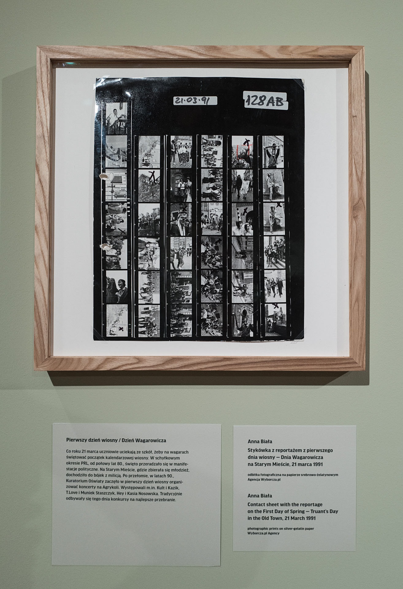 Co warto podkreślić, to „muzealne” podejście do zdjęć oznacza, że kiedy to było możliwe, mamy na wystawie do czynienia z oryginalnymi odbitkami, wykonanymi w tamtych latach, nawet jeśli były małych rozmiarów. Takie są właśnie zdjęcia Millera, które wtedy były zwykłymi wglądówkami służącymi archiwizacji. Duże kolorowe powiększenia, które możemy oglądać na wystawie, to powiększenia wykonane współcześnie metodą skanowania oryginalnych slajdów i druku cyfrowego. I jeśli jest w opisie zaznaczone: np. 1991/2022 to oznacza, że zdjęcie wykonano w 1991 roku, ale prezentowane powiększenie pochodzi z roku 2022.