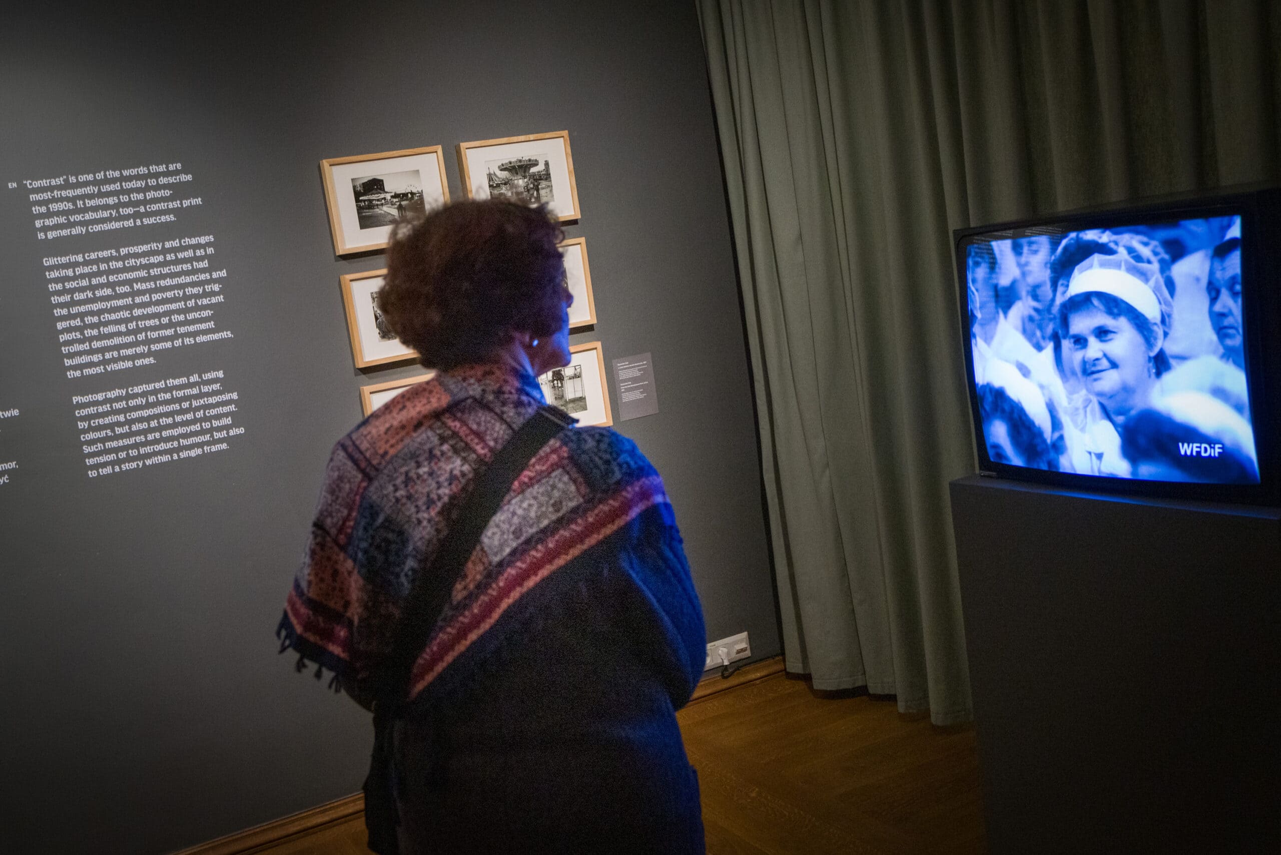 Inna sala wystawy „Błysk, mat, kolor. Fotografia i Warszawa lat 90.” mieści głównie niejako zapis socjologiczny tamtych lat.