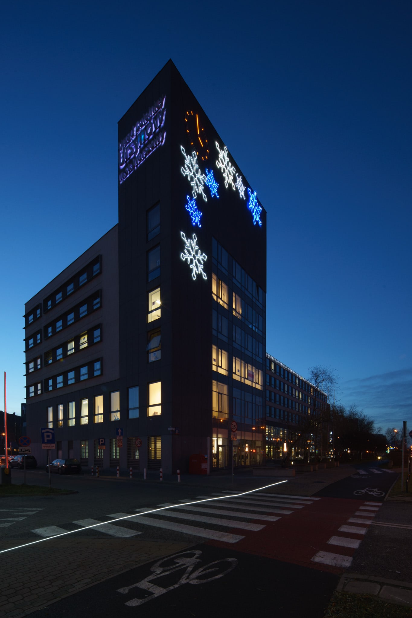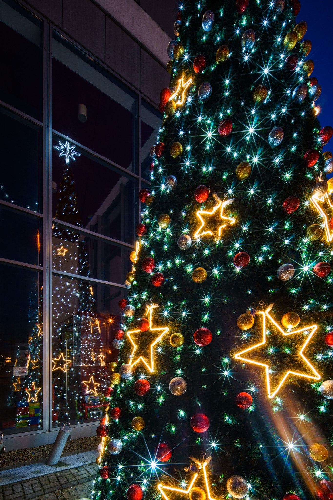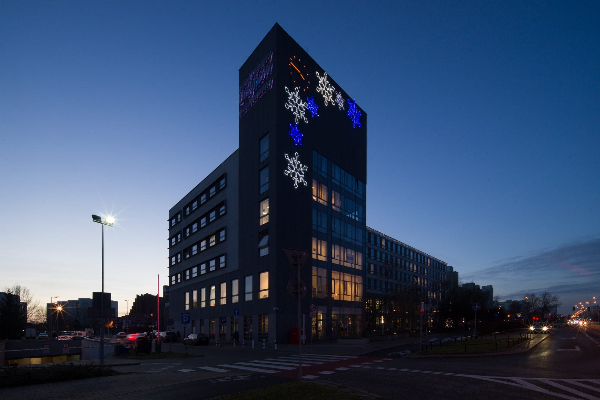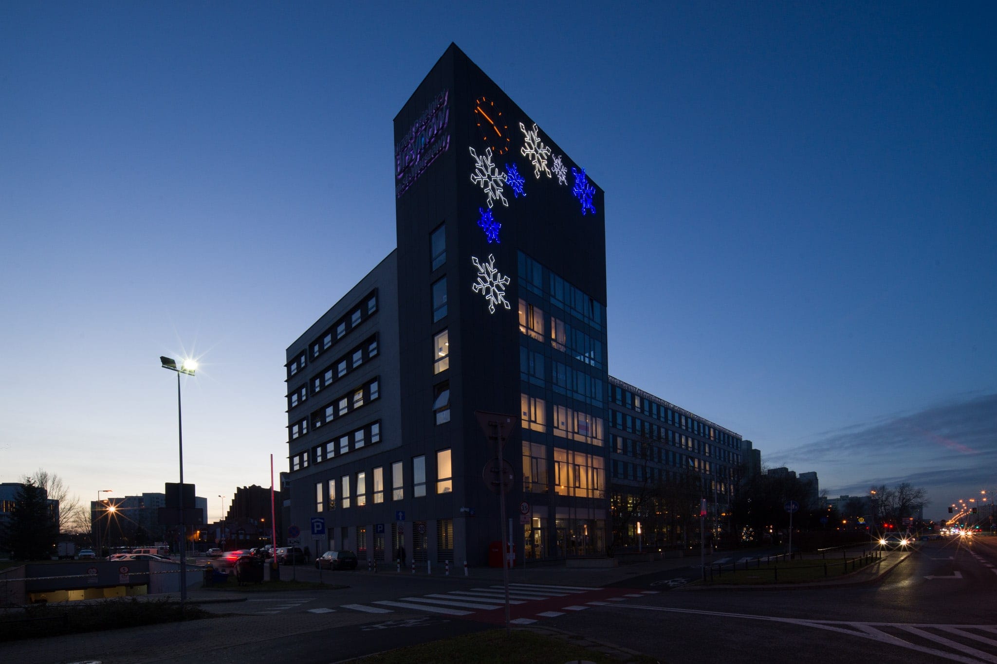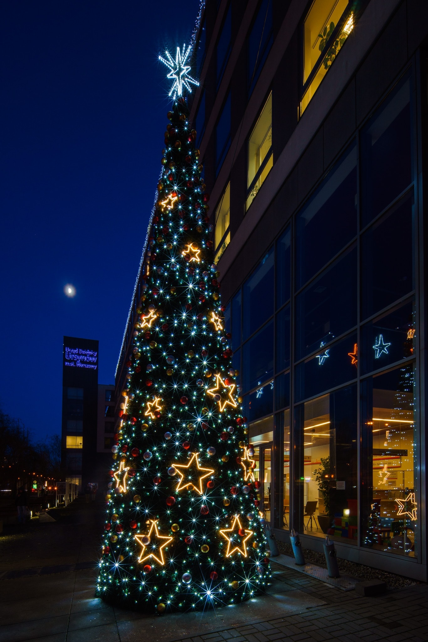 Cały grudzień czekałem na słońce, nie tylko ja :-). Chciałem zrobić zdjęcia budynku ursynowskiego ratusza przystrojonego świątecznymi ozdobami. Oczywiście wieczorem podczas tzw. „niebieskiej godziny”. Gdy nadarzyła się okazja, złapałem statyw z aparatem i pobiegłem. Niestety zapomniałem o poziomnicy!