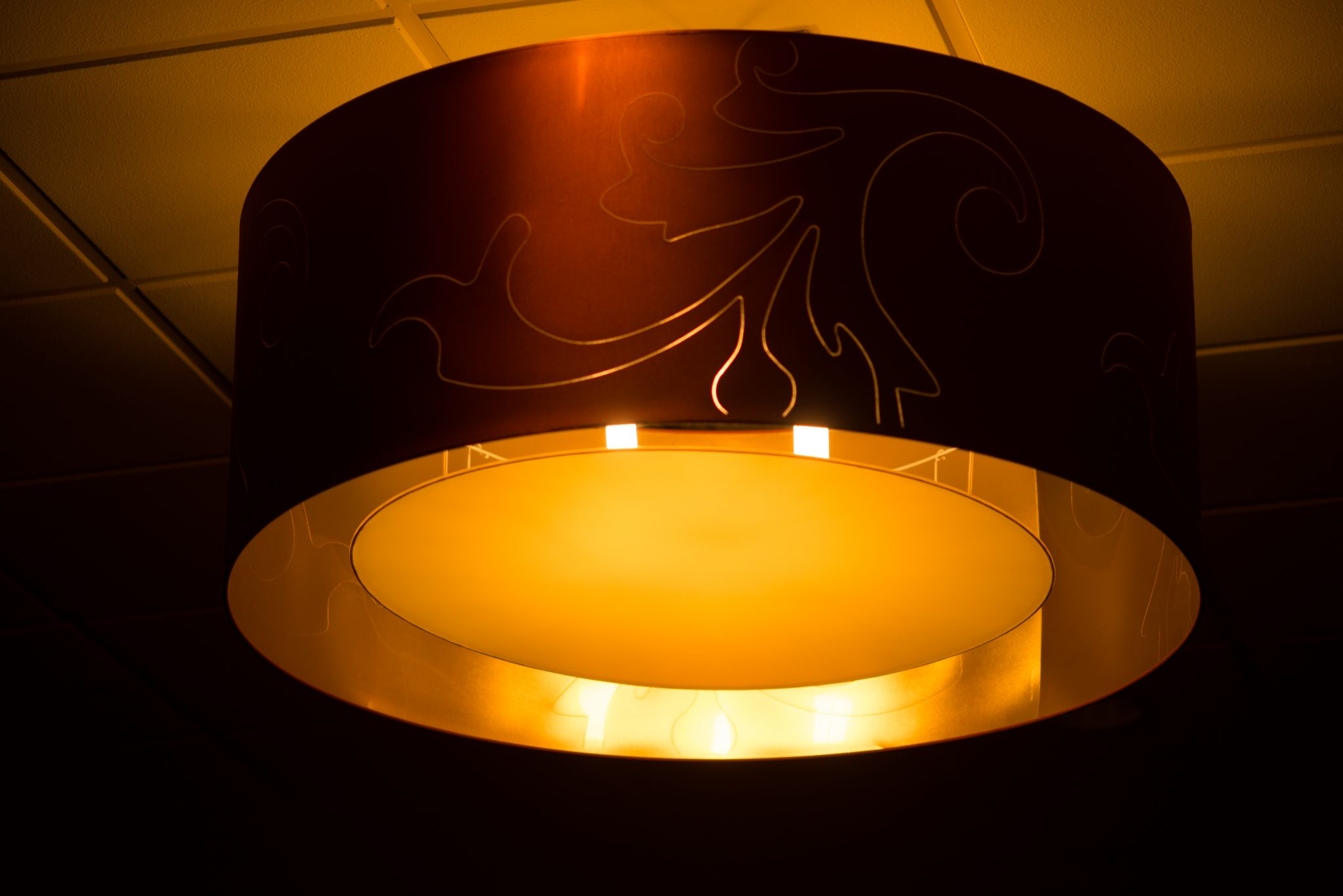 Zwykła hotelowa lampa staje się roześmianą buźką.