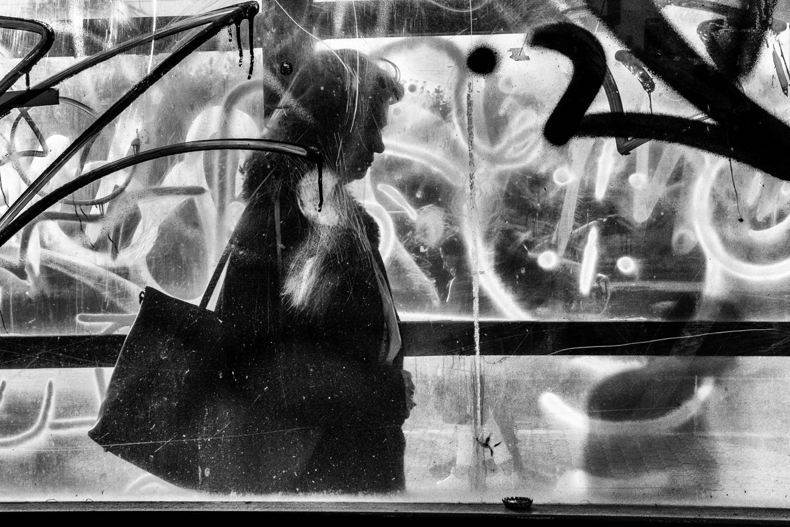 Minął następny miesiąc, poszłam poprawiać. Tym razem zabrałam statyw. Ale jak to, do streeta statyw? A jednak. Po statyw sięgam zawsze, kiedy zależy mi na idealnym kadrze. Tu, żeby złapać pion, poziom i rytm wewnątrz kadru, był on mi naprawdę potrzebny. Poprzednio, za każdym podniesieniem aparatu do oka łapałam ciut inny kadr. A trzeba to robić było wielokrotnie, bo istotą zdjęcia było złapanie przechodzącego człowieka w odpowiednim miejscu. Tym razem wszystko zagrało jak należy.