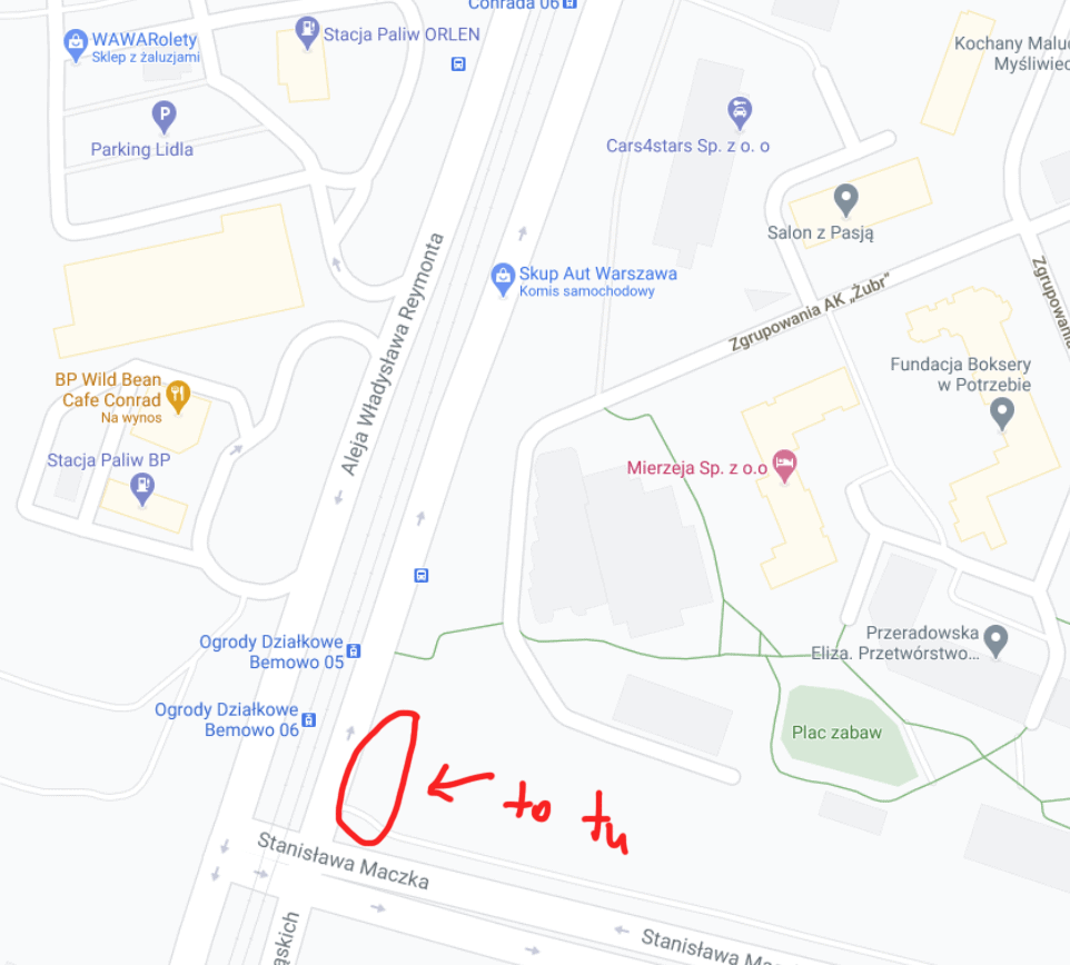 Moja miejscówka ma około 50 m długości i znajduje się 1200 m od mojego warszawskiego mieszkania. To róg Al. Władysława Reymonta i gen. Stanisława Maczka. Miejsce, które od kilku lat mijam raz w tygodniu w drodze do pracy w ośrodku na Woli. Z autobusu wygląda nieciekawie. Kawał ekranu dźwiękochłonnego, pobazgranego niemiłosiernie przez graficiarzy. Z tyłu osiedle z lat 90. I przystanek tramwajowy. Perspektywa zmienia się, gdy wyprawić się tam pieszo.