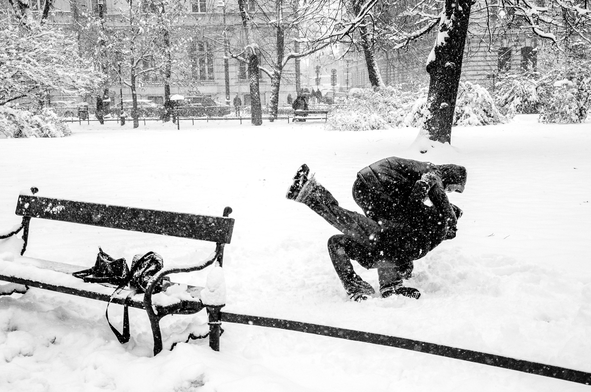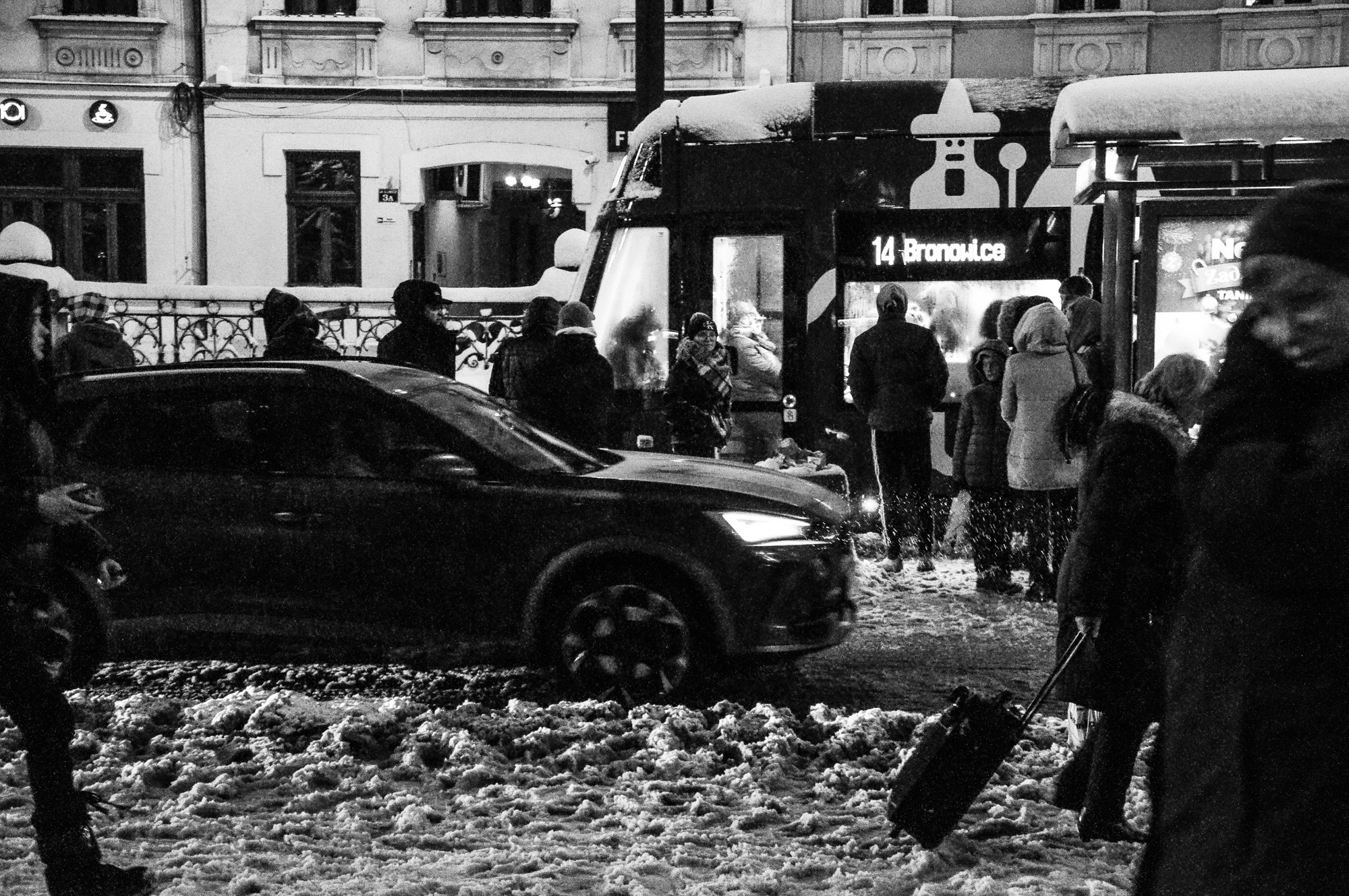 W nawiązaniu do nowojorskich spacerów tych amerykańskich mistrzów fotografii MuFo wpadło na pomysł, żeby zorganizować spacer fotograficzny po Krakowie. Utworzyli wydarzenie na FB i oczywiście musiałam tego spróbować. Nic to, że padał śnieg. Grupa zainteresowanych spacerowiczów stawiła się w MuFo Rakowicka. Po zapoznaniu się przy śniadaniu ruszyliśmy w Kraków. Przewodnikiem był Marcin Krotla – historyk sztuki, edukator muzealny. Zaproponował formułę: oglądamy zdjęcie Steichena lub Steglitza na tablecie i szukamy wersji krakowskiej. Jak jest Central Park, to mamy Planty, jak jest nowojorska dorożka, to mamy i krakowską. Jak są wieżowce przy Fifth Avenue, to i w Krakowie znajdzie się jakaś wysoka kamienica. Itd., itp.. Zabawa była przednia, co chyba widać na zdjęciach?