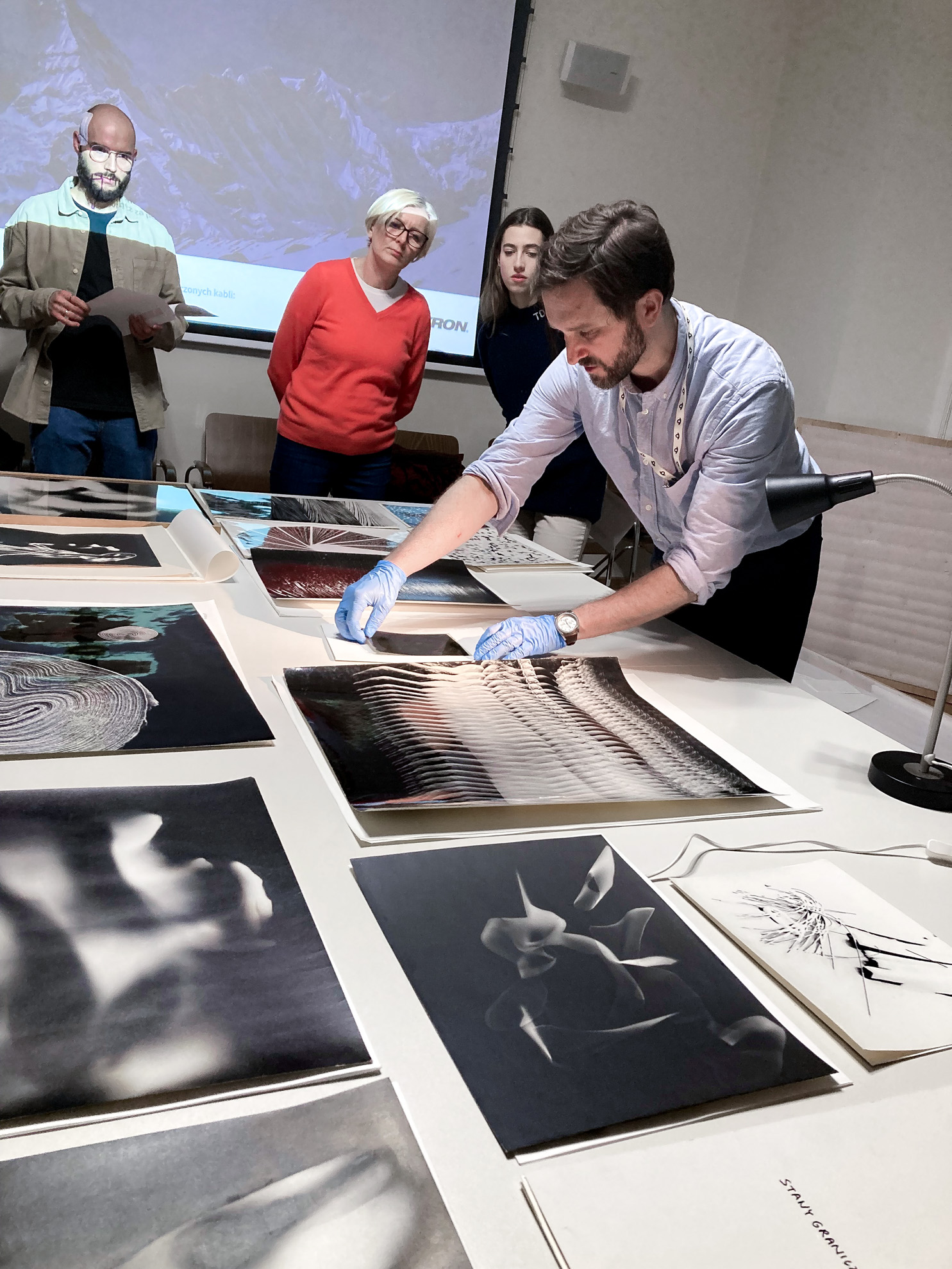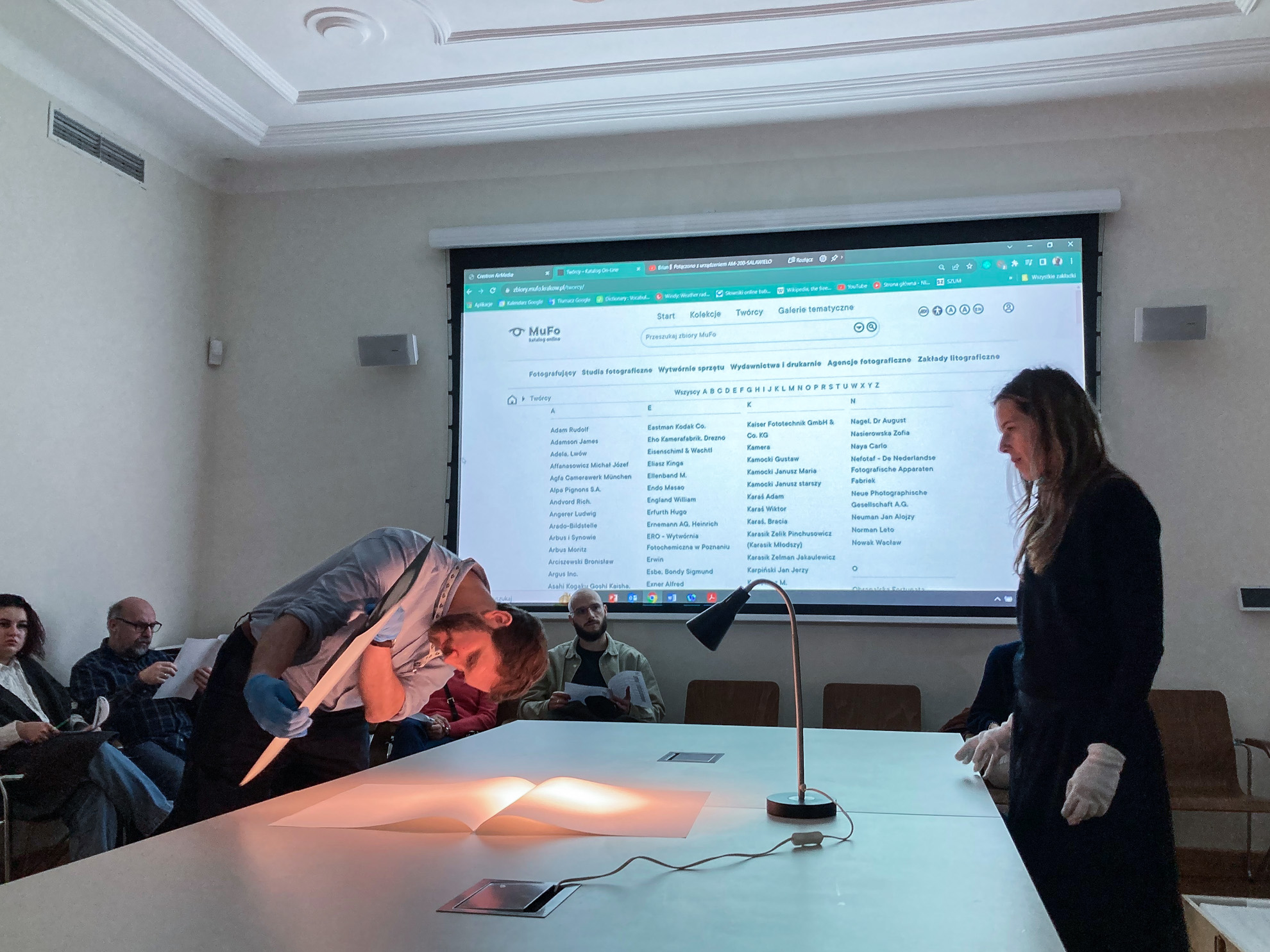 To był tzw. pokaz performatywny czyli pokaz na żywo. Prowadzącymi byli Małgorzata Swaryczewska-Krzakiewicz z fundacji SPLOT i dr Dominik Kuryłek – historyk sztuki, kierownik Działu Fotografii i Technik Fotograficznych w MuFo. Każdy z uczestników otrzymał do rąk spis prac, które miały być prezentowane (autor, tytuł pracy, wymiary), po czym prace te wjechały na wózku, opakowane w bezkwasowy papier w sposób zabezpieczający przed samoistnym wysunięciem się. Pojedynczo, praca po pracy, lądowały na stole i oglądane były z każdej strony; pieczątki i podpisy z tyłu również.