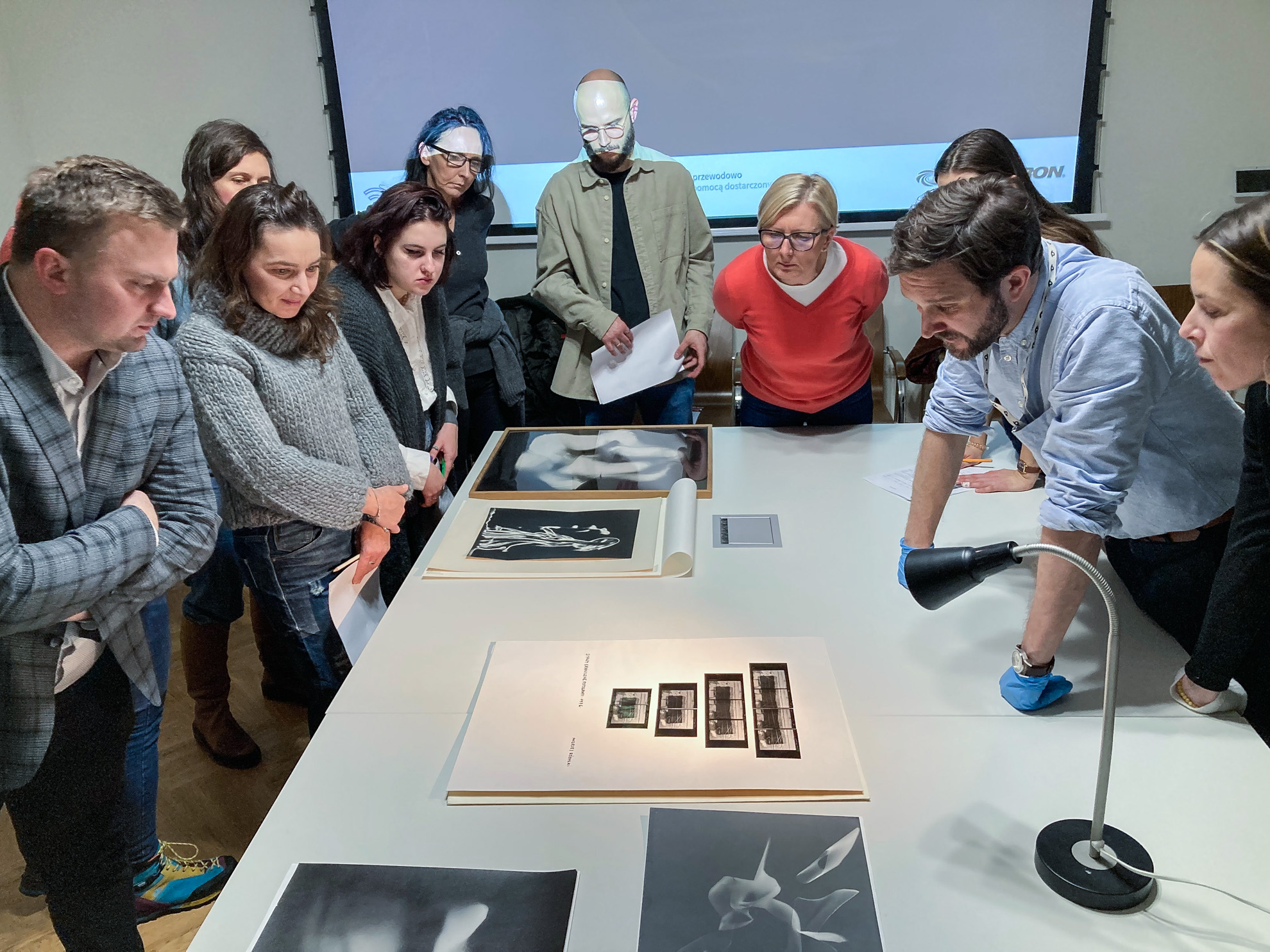 Co mnie zaskoczyło? To, że zobaczyłam abstrakcyjne prace fotografów, których znałam osobiście (i wydawało mi się, że ich twórczość też). I których bym o to nie podejrzewała: Jerzy Lewczyński, Paweł Pierściński. Równie wielkim zaskoczeniem była dla mnie abstrakcja Zofii Rydet. Oryginalne odbitki oglądane nie w ramach i pod szkłem prawie pachną starością. Mają na powierzchni naturalne wysrebrzenia, które widać pod pewnym kątem. Ich oglądaniu była jakaś magia, zwłaszcza w towarzystwie równie zakręconych pasjonatów fotografii i rzeczowych komentarzy prowadzących.